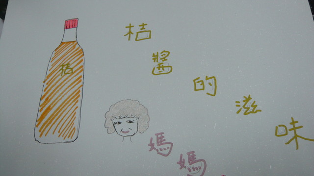 『桔醬。具有特色的客家醬料,酸酸、辣辣的口感。在竹苗山城成長的客家孩子,可能忘記山風,忘記油桐花開的情景,但絕不會忘記那一小小碟金黃色的醬汁裡,有著母親在金桔盛產季節中,親手存下來的愛…」